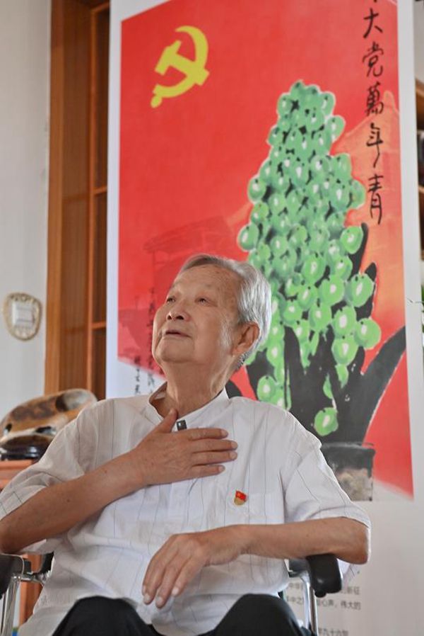 97岁的赵梅生老人身材瘦削,精神矍铄,双目炯炯。言谈间让人忘记了面前的老人已近期颐之年。