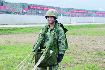 郜惠进行跳伞训练。