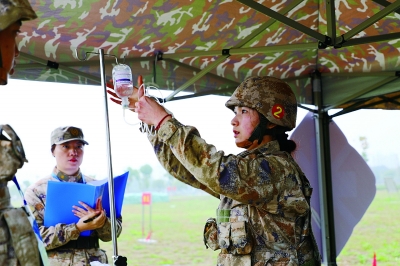 2023年,从陆军军医大学士官学校毕业的杨成被分配到卫生队,打针输液、固定包扎、背记药品名称……每项训练内容她都完成得又快又好。